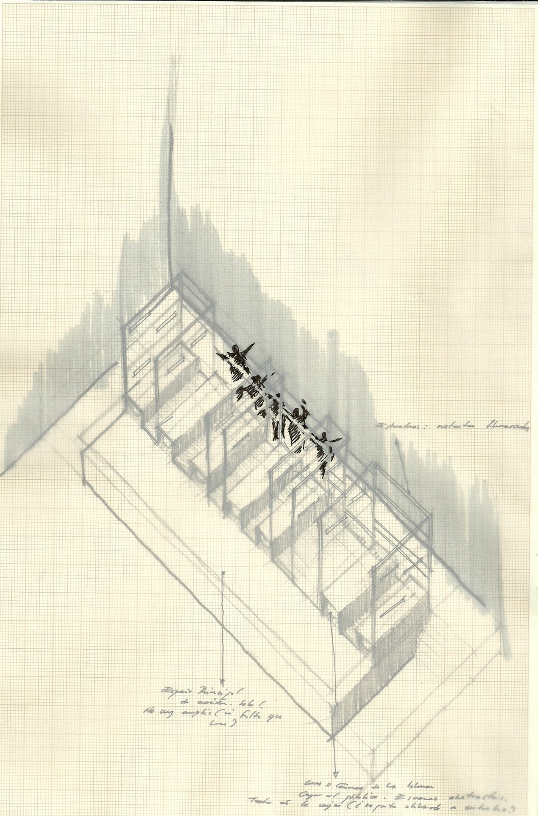 Algunos bocetos de mis ideas para una posible puesta en escena. Cuelgo un extracto explicativo del documento que recoge toda la visión escénica que plantearé en la reunión de mañana: